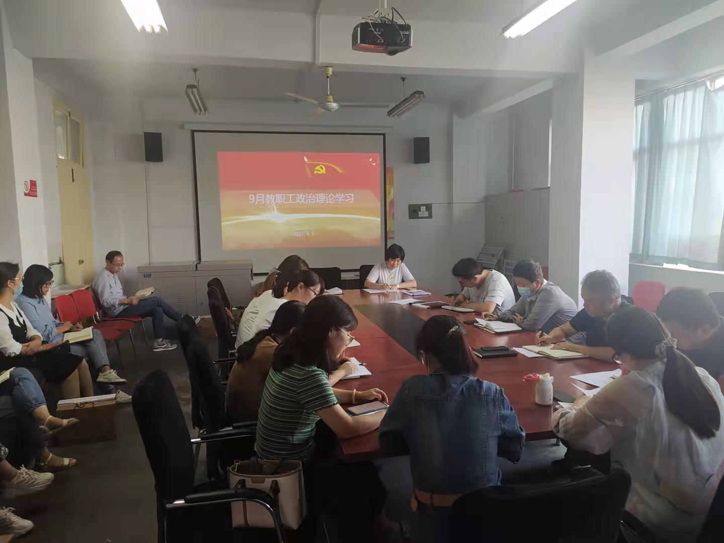 9月8日,十大买球的正规网站在206会议室召开了全体教工会,组织开展了9月政治理论集体学习。会议由党总支书记周晓燕主持,全体教职工参加了学习会。