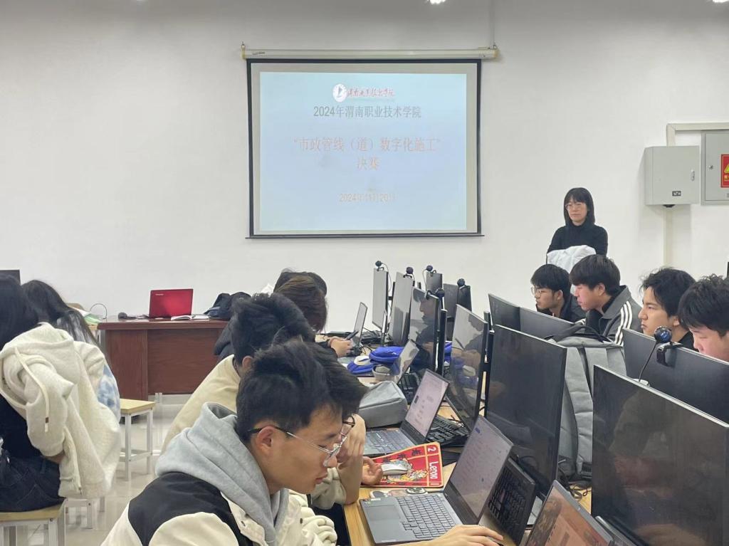 11月20日下午,十大买球的正规网站在工科楼375机房举办2024年市政管线(道)数字化施工校赛,来自工程造价、建筑工程技术专业的六组18名学生展开角逐。