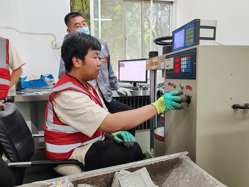 实践中心技术指导老师姚立民博士详细介绍了建筑工程开放性产教融合实践中心概况、每个实训室的功能及基本仪器的操作,随后姚立民博士、王宁宁、王伟芳老师与实践中心企业导师一起安排指导学生进行工程防水卷材检测、混凝土立方体抗压强度检测等实验操作。