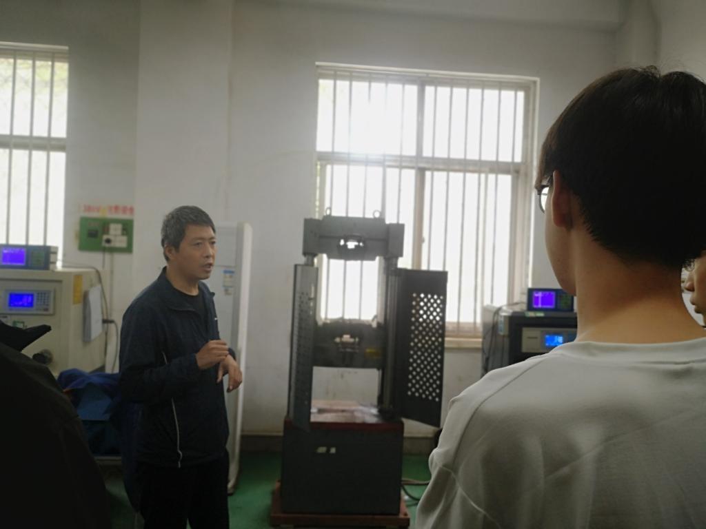 (姚立民博士讲解钢筋拉力机的操作要领)