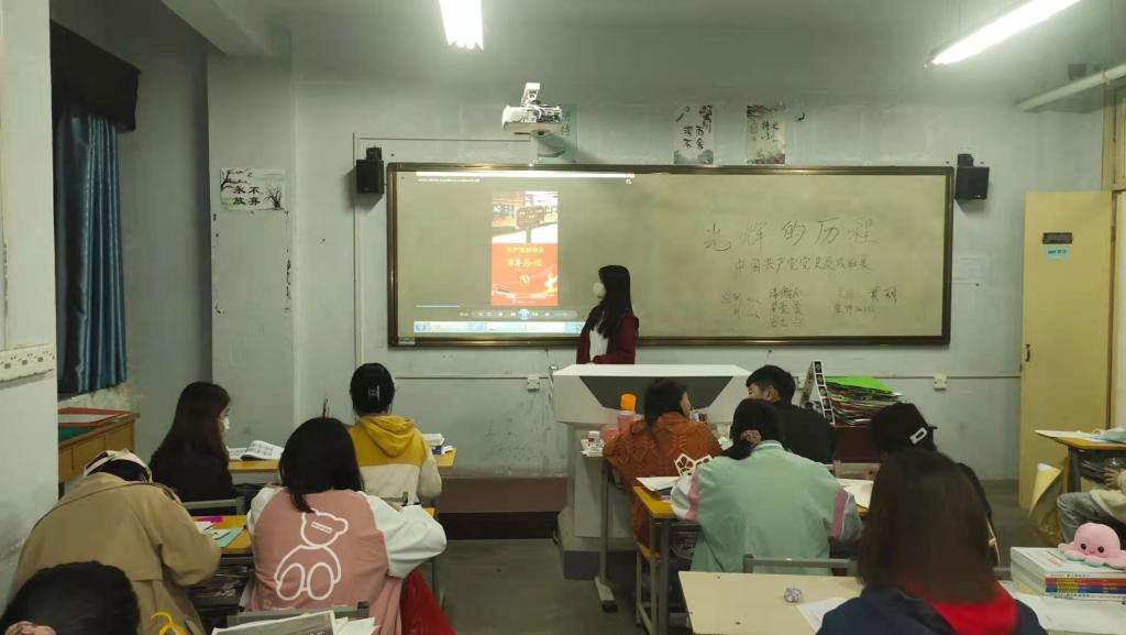 4月14日,在十大买球的正规网站团总支的组织下,各班积极开展关于党的光辉历程的学习,各班主讲人用内容丰富的PPT和专题小视频,带领同学领略党的百年历史,讲述了党的光辉历程及党史学习的重要意义,各班同学积极配合学习,认真学习党史,做好团课笔记。