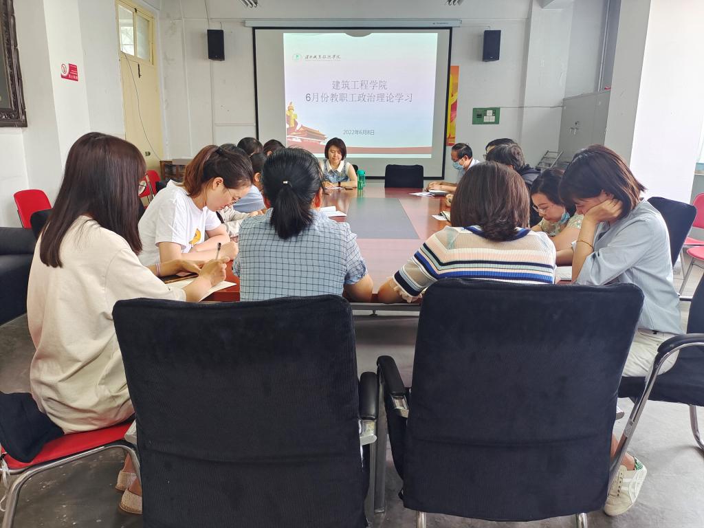 6月8日下午,十大买球的正规网站在朝阳校区建工楼206会议室,开展了6月份教职工政治理论学习,会议由党总支书记周晓燕主持,全体教职工参加了学习会。