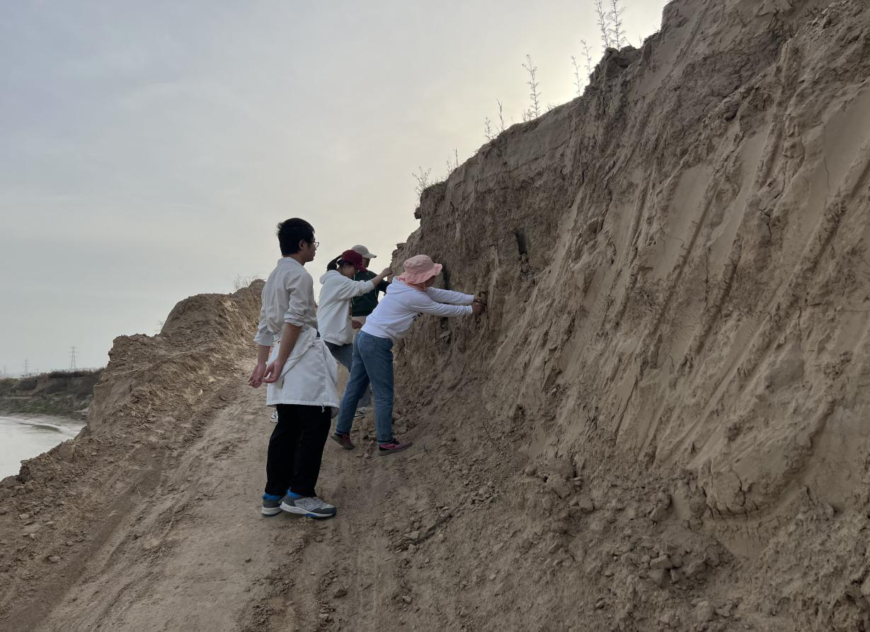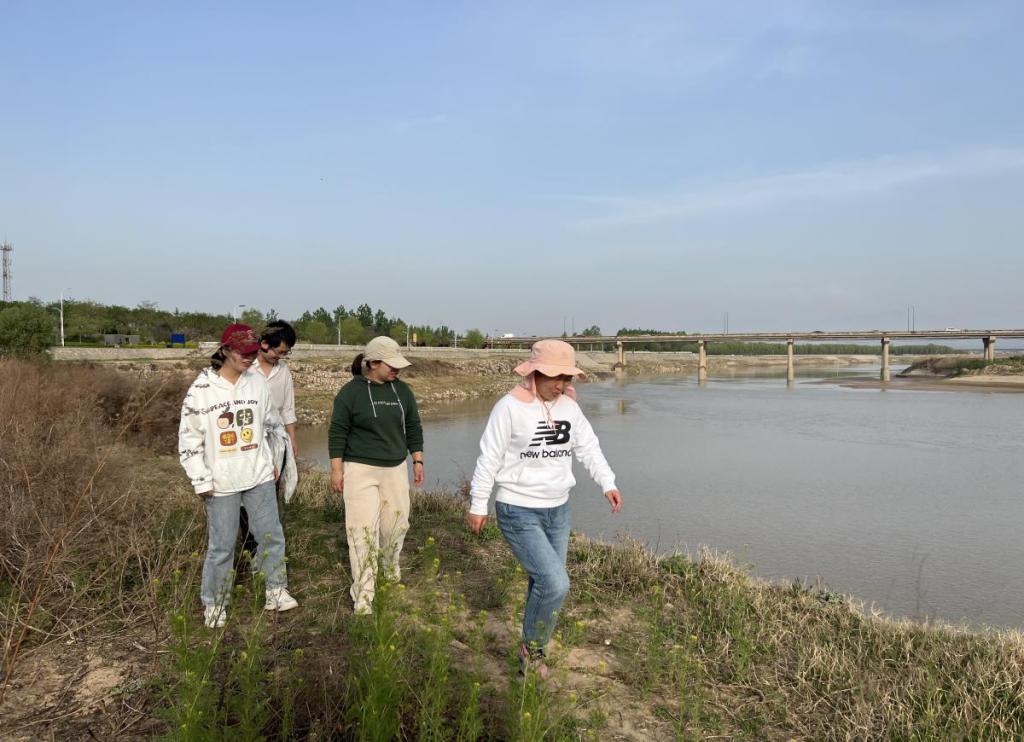 渭河是黄河最大的支流,发源于甘肃,横贯关中平原,流经我省宝鸡、杨凌、咸阳、西安、渭南五市区,在潼关港口注入黄河。渭河滋养着“八百里秦川”,养育了千百万三秦人民,成为陕西人民的“母亲河”。本次调研以赵蕊老师的科研项目及工程测量技术专业野外实践教学为依托,主要采用现场调查、现场取样、无人机倾斜摄影测量的方法,对沙王桥下的河滩李控导工程一带渭河河道发生凹岸侵蚀、凸岸沉积这一显著的河流的地质作用、及周边的土地利用情况进行调查,对河流冲刷面的土样进行采集。