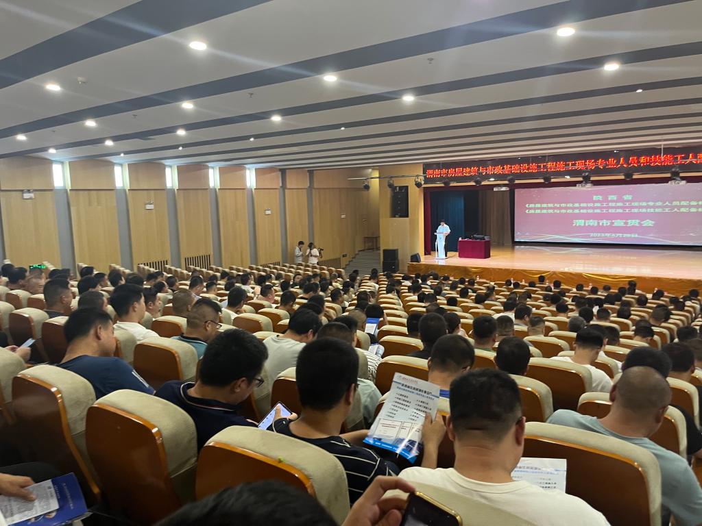 按照省住建厅统一安排,6月20日,渭南市房屋建筑与市政基础设施工程施工现场专业人员和技能工人配备标准宣贯会在十大买球官网召开。渭南市各县市区(管委会)建管负责人,质量安全监督机构负责人,注册地在我市的一、二级建筑施工企业和工程监理企业相关负责人,辖区在建项目负责人等近300人参会。陕西省建设教育协会秘书长杨越峰,陕西建工控股集团股份有限公司人力资源部顾问陈宝斌,陕西建工控股集团股份有限公司首席专家李西寿,学校及住建局有关领导出席此次活动,建工学院负责人及部分专业教师学生代表参加会议。