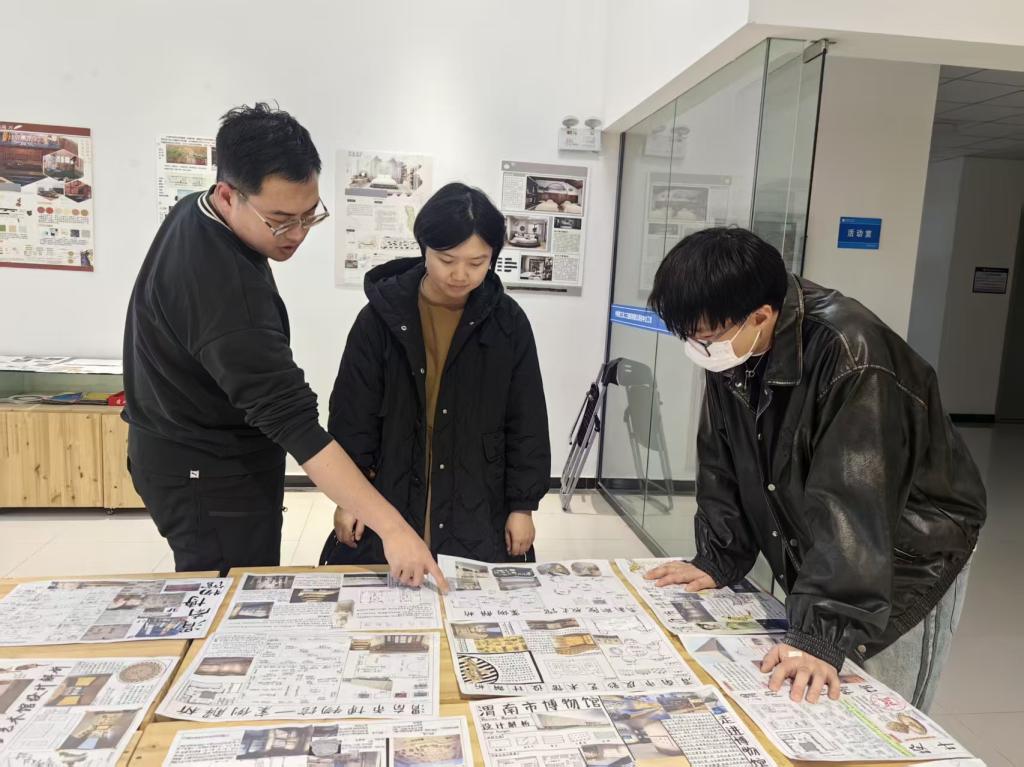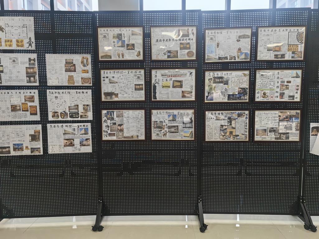 实训期间,同学们通过实地参观、现场教学与设计解析,初步建立起对空间、尺度、材料与地域文化的感性认知。在渭南市博物馆,同学们感悟历史空间的叙事逻辑;在皮影艺术馆,皮影艺术的造型、色彩与光影激发了他们浓厚兴趣;在校史馆,独特的文化氛围成为理解环境与人文关系的生动教材。