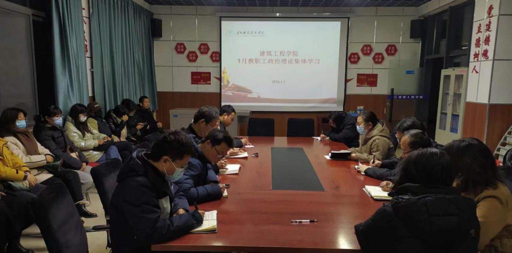 1月3日下午,十大买球的正规网站在建工楼108会议室召开全体教职工会议,组织开展了1月份教职工政治理论集体学习,会议由党总支书记周晓燕主持。